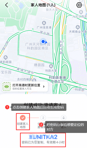 第二步:点击“创建我的家人地图”,之后会弹出密码。