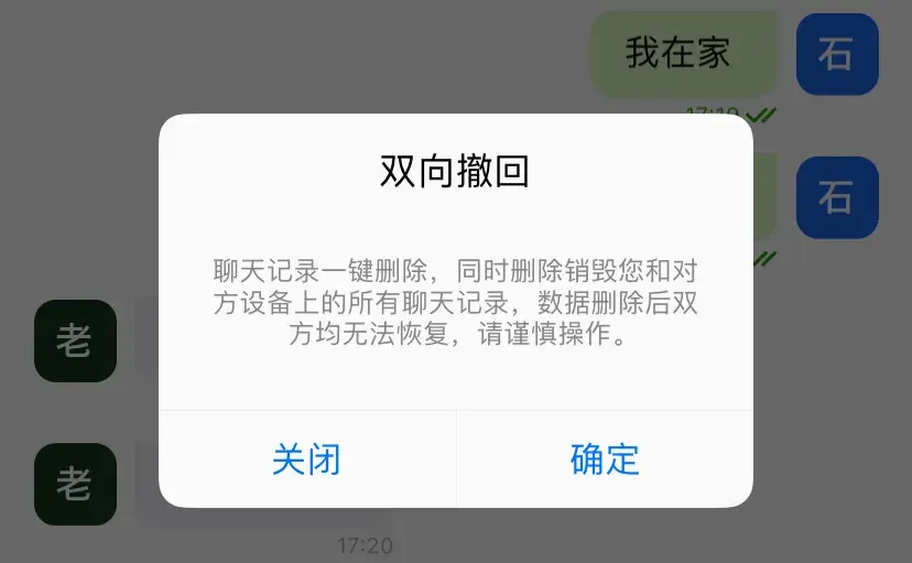 蝙蝠的双向撤回能一键撤回聊天双方所有消息,且数据多次覆盖不可恢复。有效的保护你的聊天隐私安全。