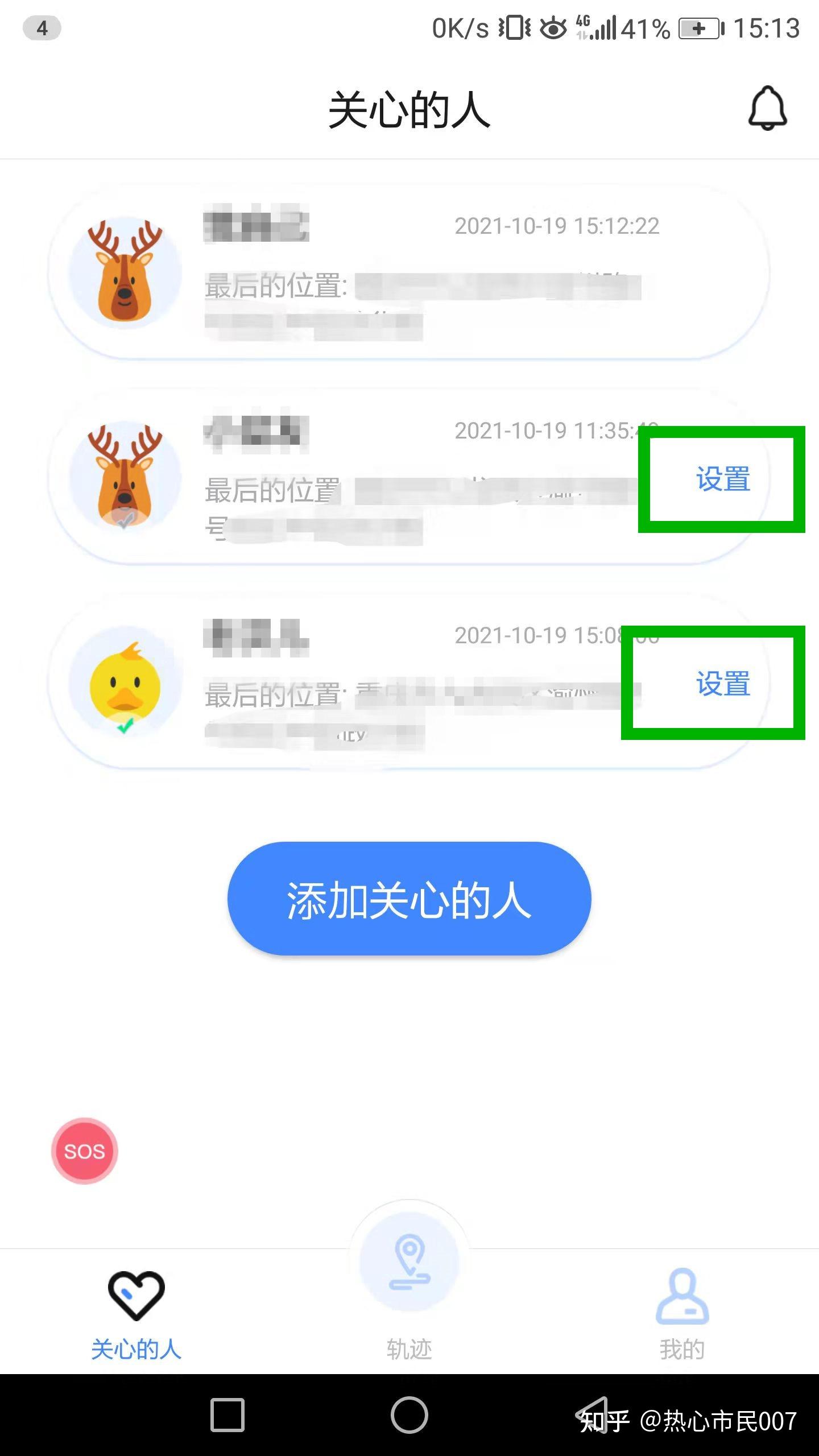 点开红色的“SOS”按键,添加一位或多位紧急求助人,以便遇到突发情况后,家人和亲友能在最短时间呼叫救援。